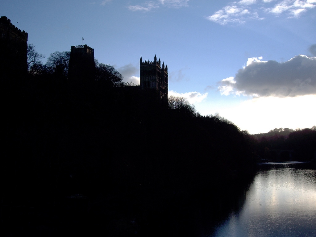 Durham is an ancient city in North East England. This is a silhouette of the cathedral taken from a bridge across the River Wear.